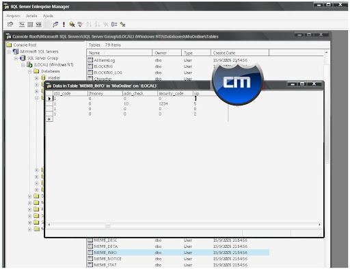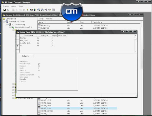 05 - Agora para ADD Conta VIP abra o SQL Entrepise Manager, Databases, MuOnline, Tables.